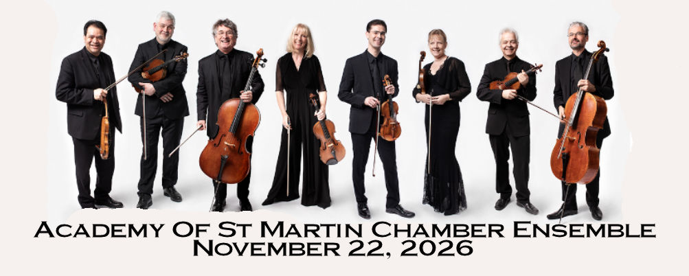 Here is our lineup for our 2026-2027 Season. Season tickets for 2026-2027 will be available starting in late June 2026. Single tickets for these concerts will be available in late August 2026.
